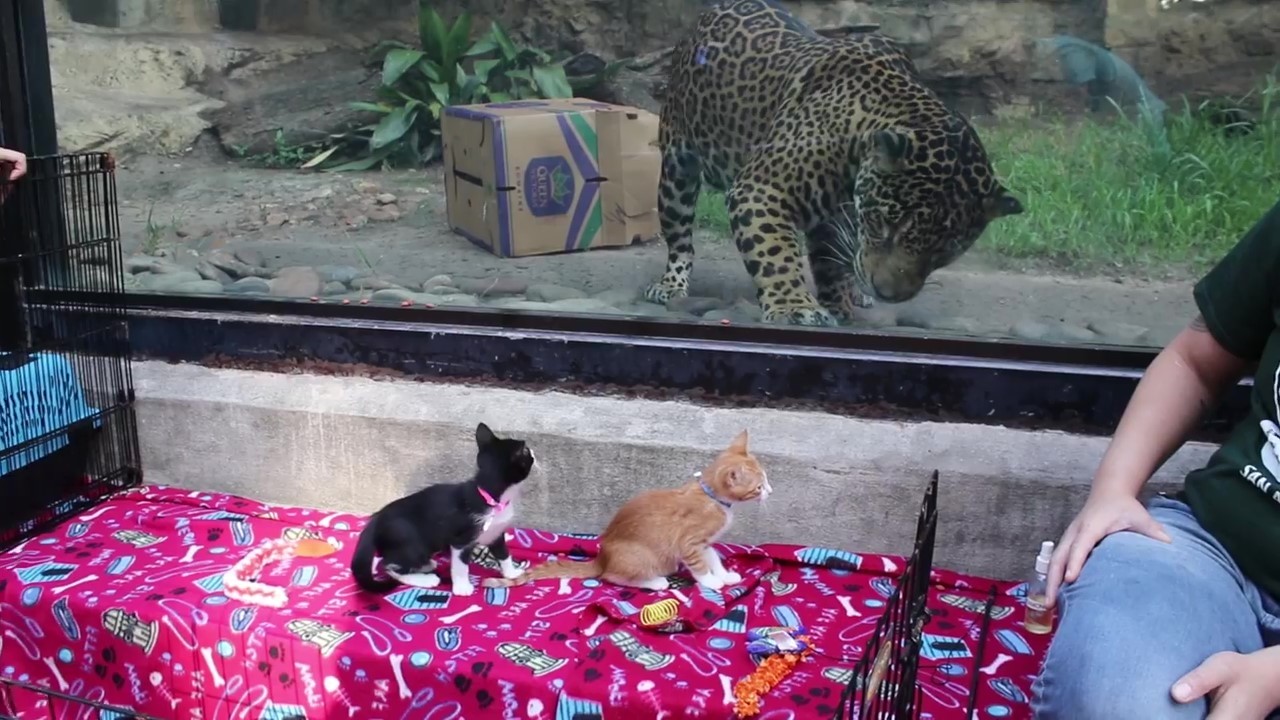 牠一定吃了超多罐罐!奶喵參觀動物園「拜訪遠親」反應超崇拜:我也能長這麼大嗎~