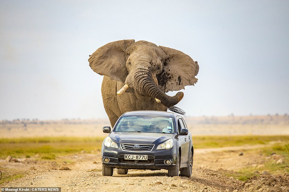 不是在拍電影! 肯亞大象受驚嚇「一路追車跑」 超驚險畫面全捕捉:差點就被踩!