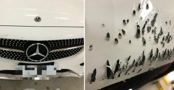 真的好衰!近日有一位車主將一部白色賓士停在某停車場,結果隔天一早要開車時,竟然看到車頭上面多出了好幾個大洞,而且密密麻麻的布滿車身,讓他當場看傻眼,於 ...