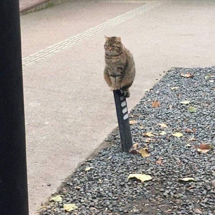 坐姿太帥!肥貓「穩坐路燈上」霸氣外漏網改圖「變超級英雄」毫無違和感