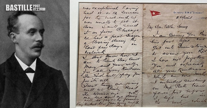 「鐵達尼號」遇難牧師手寫信將被拍賣預計市值50萬2020年11月05日11:05最後更新:11:07來自100年前的感謝1912年巨型郵輪「鐵達尼號」 ...