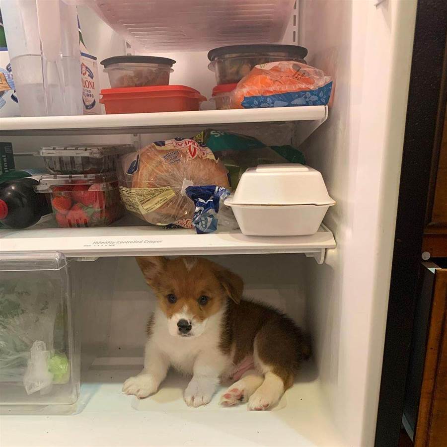 開冰箱驚見一坨「冰基淩」!萌柯基從小「最愛睡冰箱」主人無奈:喬一個空位給你睡