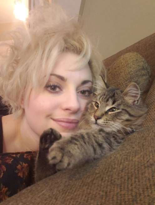 ▼從此Freddy每天都會在主人的頭上待10到20分鐘,Chelley也很享受這段戴「貓咪帽子」的溫馨時光。