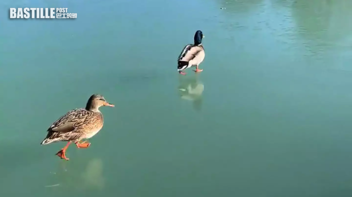 有民眾在馬德里市中心的Retiro Park拍得,公園內一個水池因低溫結冰,有兩隻鴨子因無法停在水面,只好在冰面上閒晃,狀甚有趣。而在另一段網民分享的片段中,更可見池中的魚正張開口嘗試進食水面上的麵包屑,但因湖面結冰而徒勞無功。