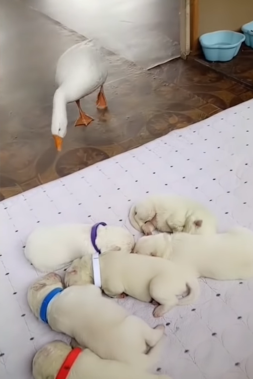 平常飼主總會替家裡的寵物們紀錄日常,後來七寶和狗狗們的溫馨互動也被轉載分享出來,網友們看了都忍不住被萌了一把:「原來鵝鵝也這麼溫柔可愛!」、「沒想到跨物種也能展現母愛,真的太神奇了」、「這隻鵝不同於我的想像」、「保母鵝看著狗寶寶們的樣子好慈愛啊~」。