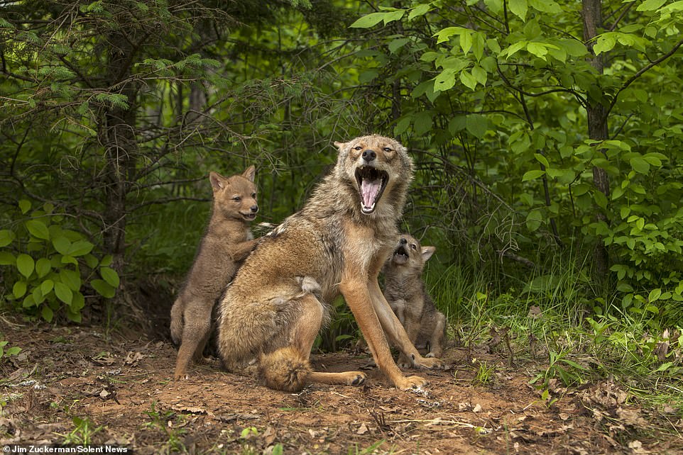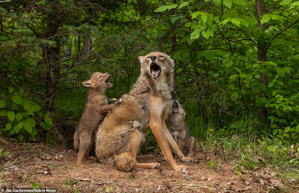 2021年01月06日野生動物的世界裡同樣有母子情深的畫面!最近攝影師Jim Zuckerman在美國明尼蘇達州(Minnesota)拍到了郊狼媽媽和2隻郊狼寶寶相處的有趣畫面。其中一隻郊狼寶寶為了引起媽媽的注意,跑到背後去抓媽媽的背,郊狼媽媽仰頭嚎叫,露出尖銳的白牙,這一幕充滿喜感。
