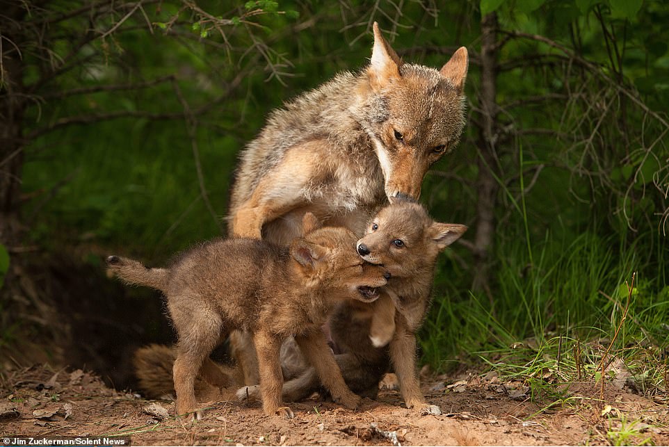 ▼Jim表示,郊狼媽媽和寶寶們的互動非常有愛。這讓他想起了自家的寵物狗,犬科動物的母子情非常深厚,媽媽經常和寶寶嬉戲玩鬧。郊狼母子的互動也沒有讓Jim失望,每一幕都很有愛。