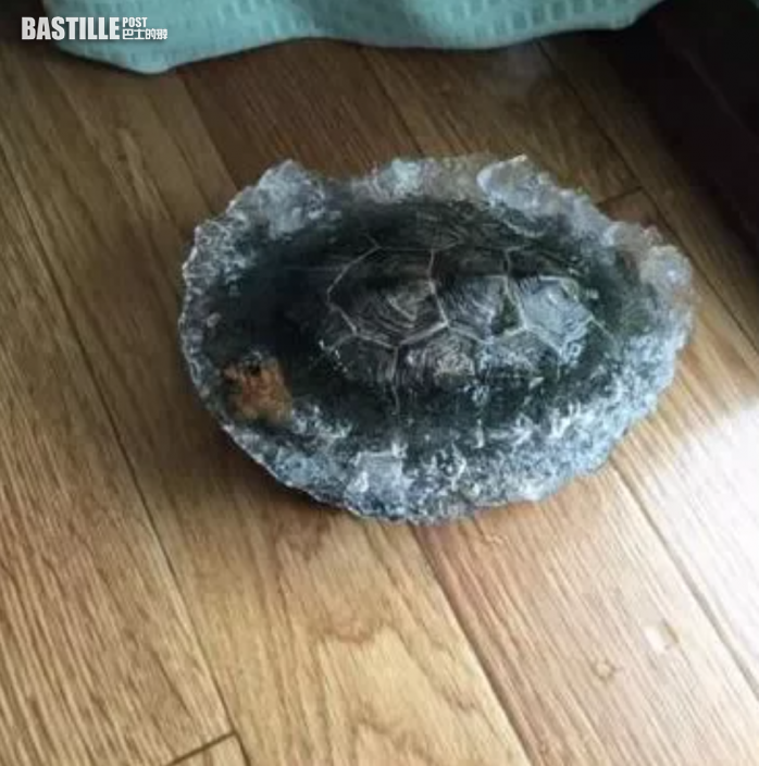 牠的主人表示,一早起來本想跟友人去賞雪,卻發現寵物龜獨自跑到露台,因為泡在水中被凍成了大冰塊,她趕緊將烏龜帶進屋取暖。