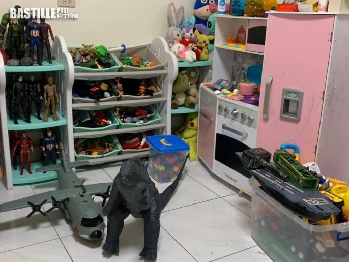 爸爸在【爆廢公社二館】分享照片,慨嘆平日辛苦工作得來的錢都變成了小孩喜歡的東西。從照片上看到,小孩的遊戲房內有不同的玩具,包括一組玩具廚房,不同的廚具、食物,還有玩具車及機械人等等,令人非常羨慕。