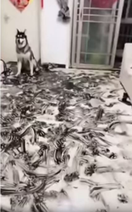 沒養狗的人也知道,二哈是出了名的愛搗蛋和蠢萌,如果放牠一隻狗在家,後果肯定慘不忍睹....一位中國網友回到家時,發現客廳被抹上大片墨跡,原本純白乾淨的地板,頓時變得烏漆媽黑,上頭還有踩得亂七八糟的狗腳印,讓他氣到差點中風!