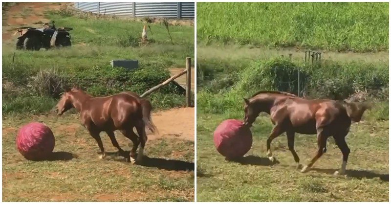 影片中衝出來撿球的不是一隻狗狗,而是一隻名叫「Beau」棕色馬兒,讓所有人瞬間看傻了眼!牠的拿手絕活就是用鼻子頂著球前進、見到人踢球也會接住,甚至還能叼著球到處跑,這隻擁有狗靈魂的馬兒根本就是個不折不扣的「球球控」,所有人看了也都覺得相當有趣!