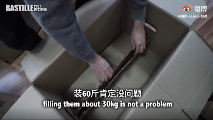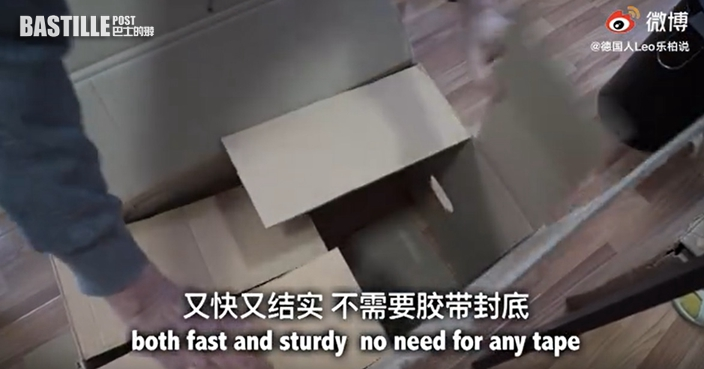 旅居內地的德國人樂柏,時常在微博分享德國文化及生活小常識的影片,今次他就與大家分享中國製造與德國製造紙箱的大不同,他在影片中表示,自己在內地購買的紙箱通常用幾年就不堪使用,不過這跟用紙的質量沒有關係,而通常紙箱底都要用膠帶封住,不然就很容易從底部裂開。