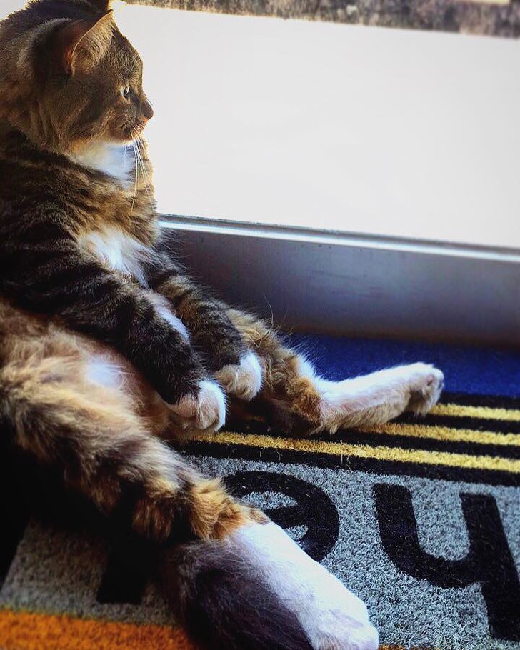 ▼這隻叫CASHnip的貓咪每天在辦公室裡走來走去,最喜歡靠在門邊看風景,員工們都很喜歡牠。