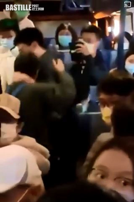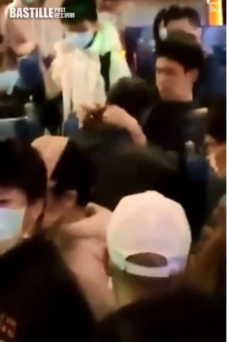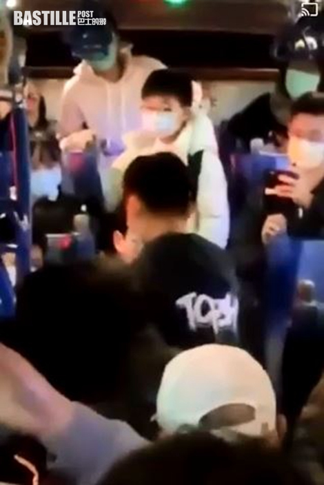 雙方因此發生肢體衝突,扭打成一團,男學生的口罩也被中年男子扯下,附近乘客見狀即將二人分開。司機也一度出言喝止,「那個背背包的你(中年男子)在幹什麼?」、「這附近有沒有派出所?」。