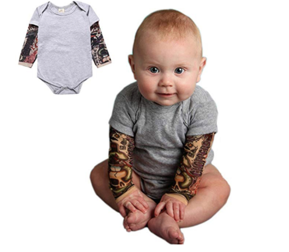 2021年01月02日很多年輕的爸媽開玩笑說:「如果生小孩不是為了玩,那將毫無意義。」他們把小孩裝扮成不同的模樣,玩得不亦樂乎。最近國外的網友發現了一件神奇的嬰兒連體衣,小寶寶穿上這件衣服後,瞬間就會變成「刺青壯漢」!