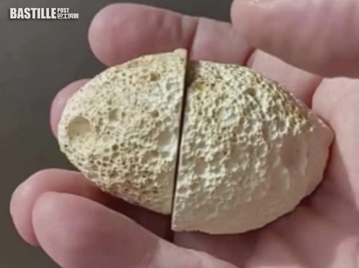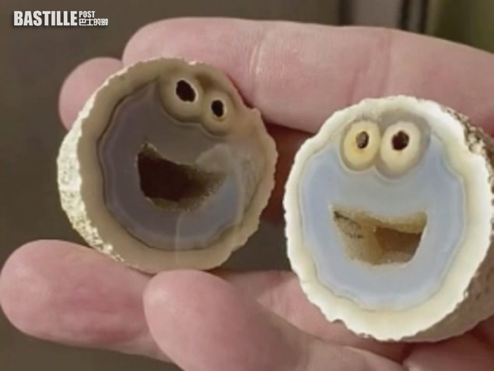 據《太陽報》報道,這塊蛋型火山岩石由盧卡斯.法薩里(Lucas Fassari)於去年11月在巴西里約熱內盧大蘇爾地區發現,55歲的美國加州地質學家鮑爾斯(Mike Bowers)購入後,將岩石對半切開,發現切面顯示的圖案與《芝麻街》(Sesame Street)的餅乾怪獸樣子(Cookie Monster)極為相似。
