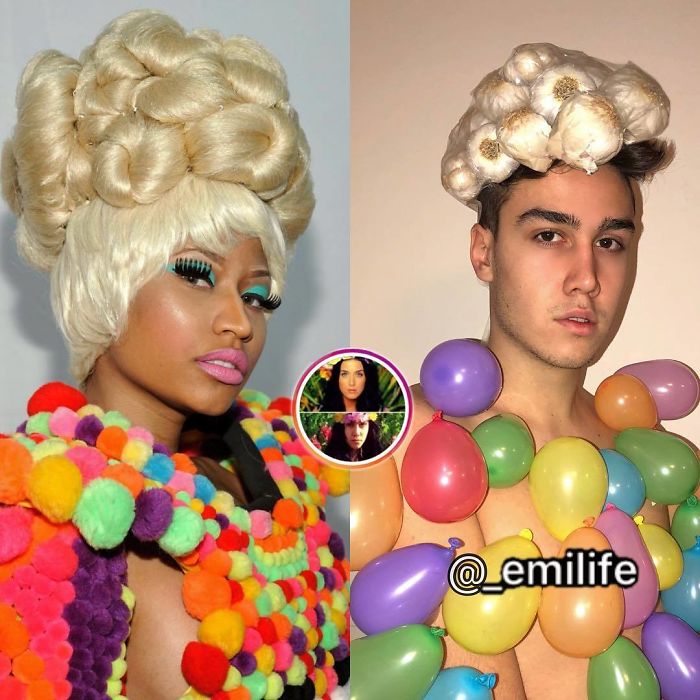 Cosplay是近年來十分流行的活動,許多Coser都會花大錢完美還原自己喜歡的角色,不過義大利就有一位喜劇演員伊曼紐爾·法拉利(Emanuele Ferrari),卻用隨處可見的食物和生活用品,把自己扮成明星或模特兒的模樣,有趣的畫面讓網友都直呼太有創意!
