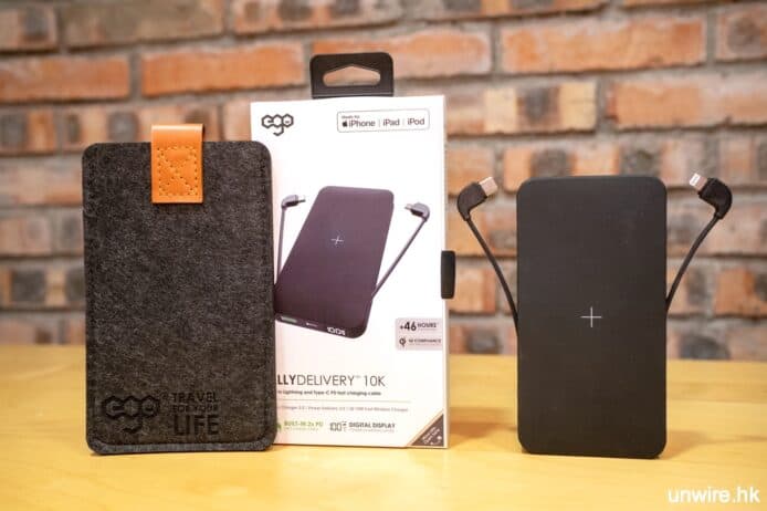 作為數碼達人,身邊總有不少先進電子產品,想把它們一齊帶出街用,就要為它們想好隨時充電的問題。今次小編到手的 EGO@ ALLY DEVIVERY 10K 就可說是充電界的「軍刀」,它周身刀張張利,內置了 Type-C 線為 Android 手機充電、內置 Lightning 線為 Apple iPhone / iPad / AirPods 充電,更兼具一個無線充電位,與兩個 USB 插口,無論旅行還是小出行都非常方便。