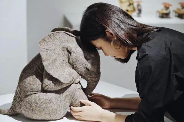 ▼殷越的羊毛氈作品「想心事」也很有名。那是一隻栩栩如生的小象,正半瞇著眼睛、微微低頭沉思。我們不知道小象經歷了什麼,但牠的心裡似乎藏著不少心事。為了做好小象,殷越花了不少心思:「做這個小象用的羊毛很軟,花了很長的時間去雕刻細節,堆砌出這種褶皺的感覺。」