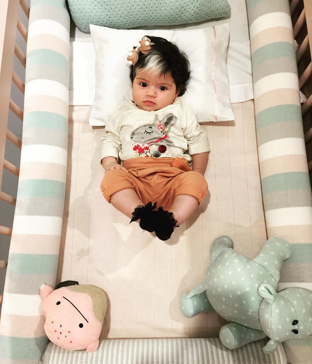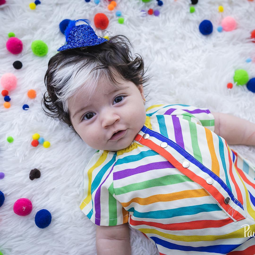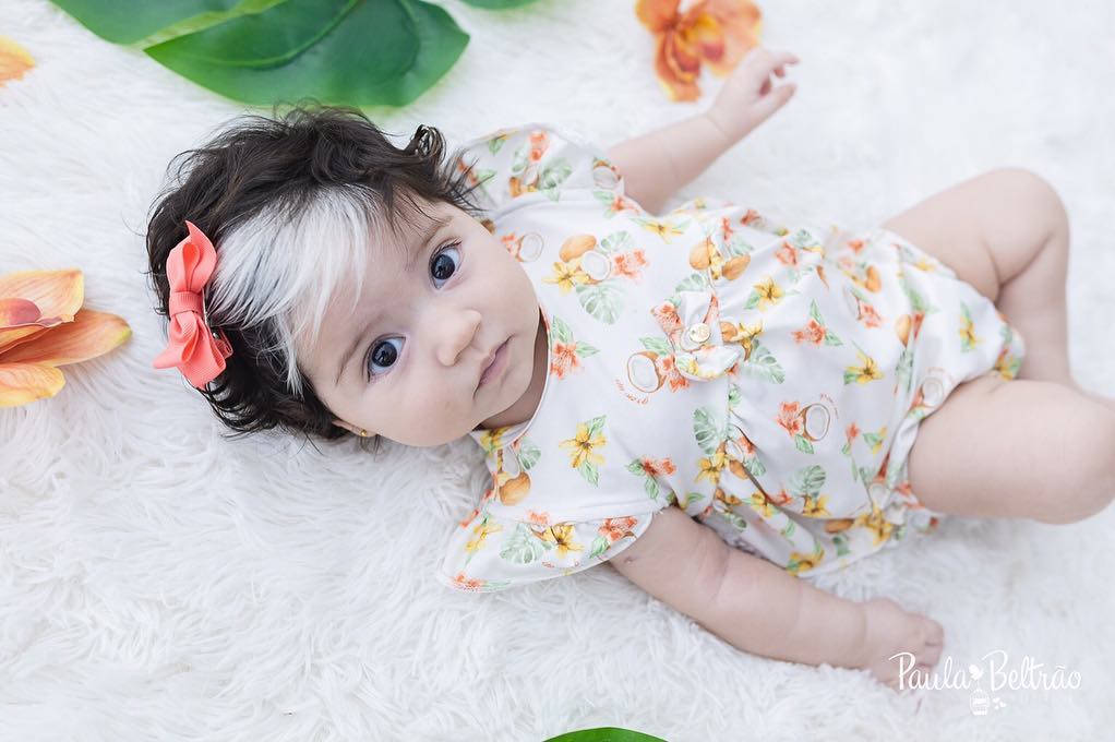 來自巴西的小女孩瑪雅(Mayah)剛出生時前額就有一小戳白髮,與旁邊的深色黑髮形成明顯對比,看起來就像是童話裡的小小魔法師一樣,拍起照來既特別又引人注意!