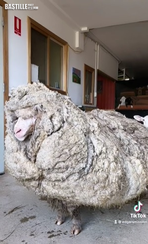 紐澳盛產綿羊,當地用於產羊毛的綿羊定期都要剃毛,如果長期不剃毛就會瘋長,變成身型巨大的「怪物」。最近在澳洲又出現一隻逃避剃毛的小綿羊,5年前從農場逃跑,靠吃山上的草為生,但由於長達5年沒有剃毛,牠長出了達34公斤的厚毛,十分驚人。