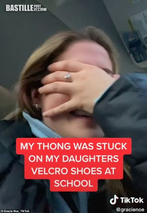 她的6歲女兒表示,當日早上踏入校門後不久就被老師叫停,對方告訴她「你的鞋子踩著點東西了」,她拿起一看發現是媽媽的內褲,於是展示給校長:「你看,這是我媽媽的內褲,她房間很亂的!」老師續叫她將內褲收好,但女兒又轉身將該內褲展示給同學,大喊「這東西今早黏在我鞋子上了」。這名媽媽在片中邊聽邊尷尬掩頭苦笑,事後還在帖文寫道:「我在替這6歲小孩物色新學校」。