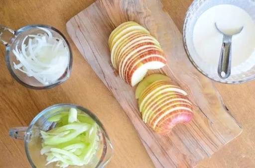 蘋果中含有非常豐富的果膠,它可以幫助我們去除體內的食品添加劑和金屬殘留物;而洋蔥中含有植物殺菌素,也有很強的殺菌作用,能夠吸收我們體內的有毒金屬元素。