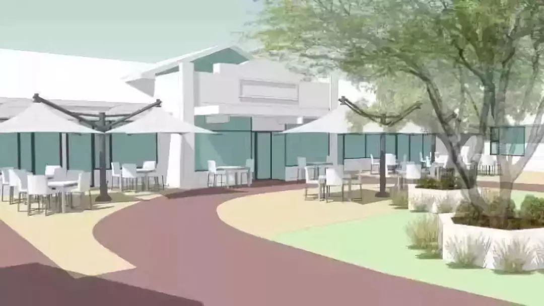 ▼小鎮的出入口是一扇厚厚的玻璃門,天氣好的時候這裡對外開放,附近學校的孩子也會來探望老人,給他們講有趣的事。