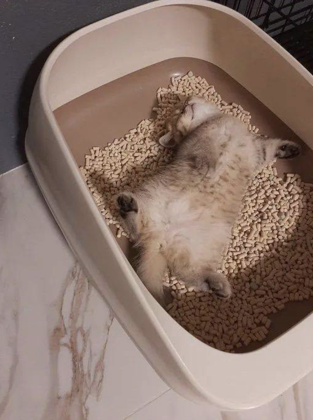 貪睡喵「躺貓砂盆」直接睏去! 其他奶喵無助看媽:倫家憋不住啦