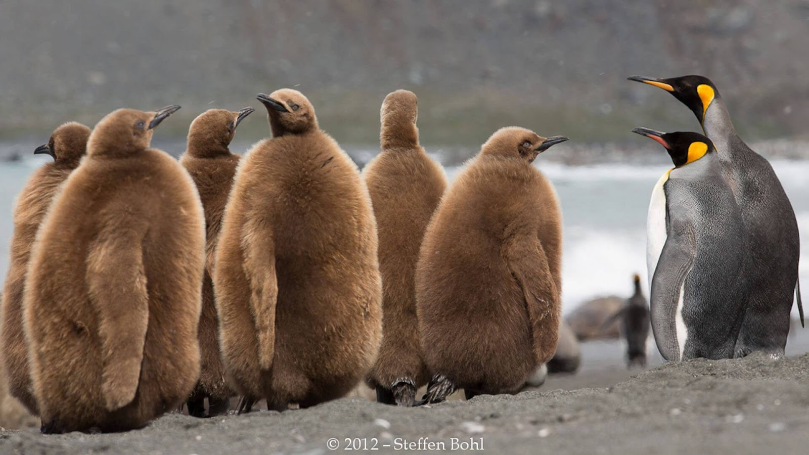 ▼企鵝成長過程中都要經歷換毛。企鵝寶寶的毛髮是棕色的,看起來就像一顆毛茸茸的奇異果。等牠們長大,褪去棕色的毛髮,才會變成我們印象中黑白色的模樣。