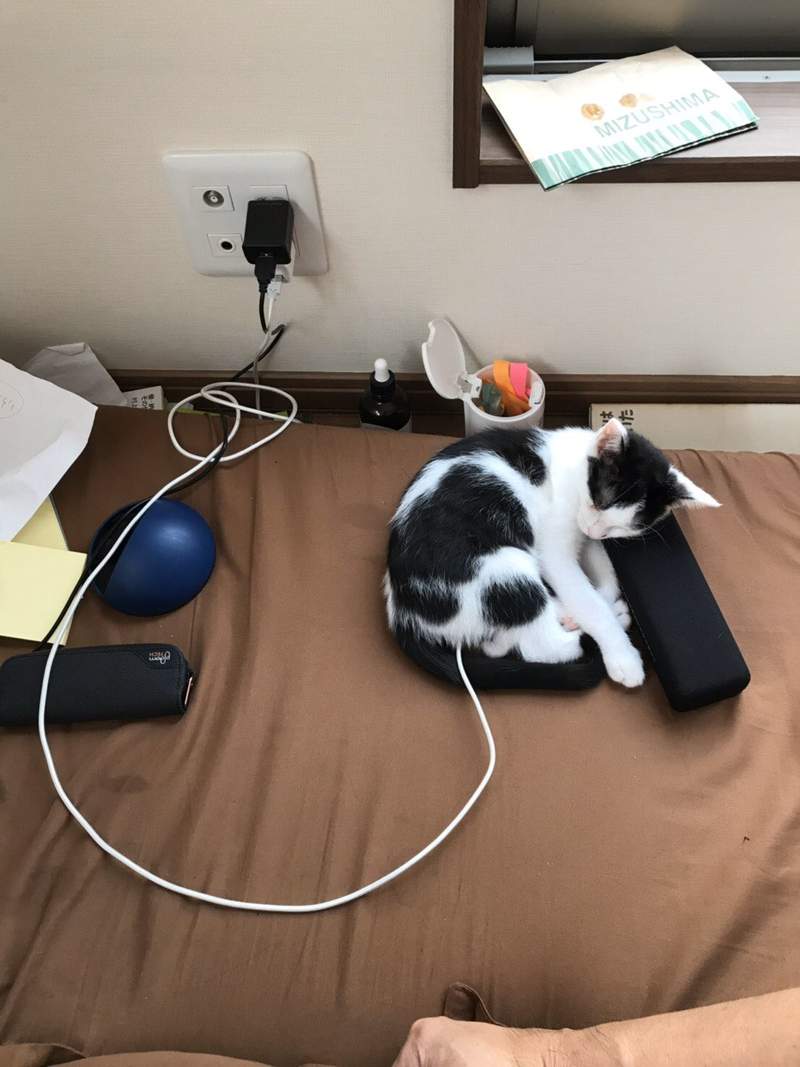 ▼「我家的貓用行動電源取暖。」