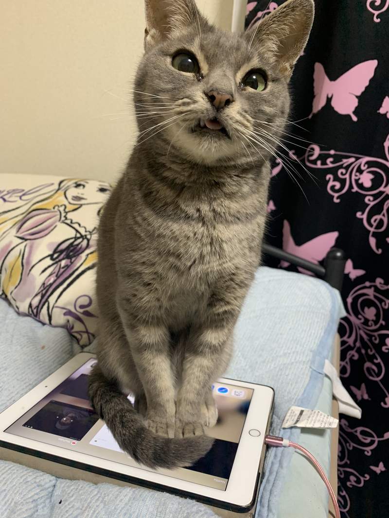 ▼「我的手機也被貓咪搶走了。」