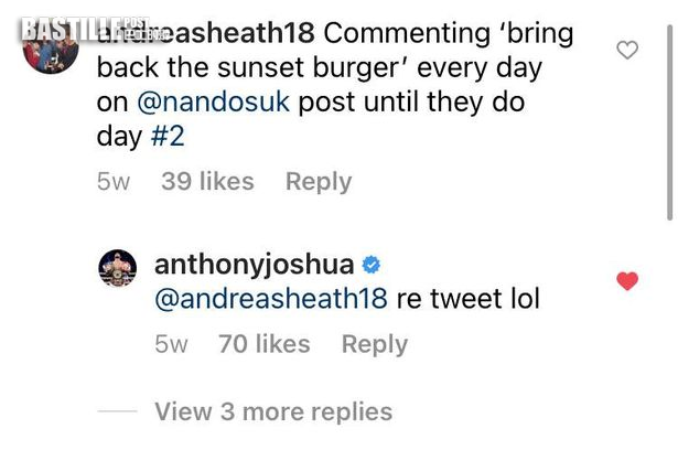 不過最近由於新冠疫情,餐廳為降低成本,將部分餐品停售,Andreas摯愛的雞肉漢堡也不幸入列其中。Andreas得知這一消息之後深受打擊,不甘心再也吃不到這款美味的他於是決定行動起來,靠自己力量來喚回「雞肉漢堡」。他在Twitter上找到Nando's官方賬號,開始堅持每日發文並@Nando's要求重新售賣漢堡,他對食物的堅持和不懈的努力甚至還吸引來知名拳擊手Anthony Joshua的關注和支持。