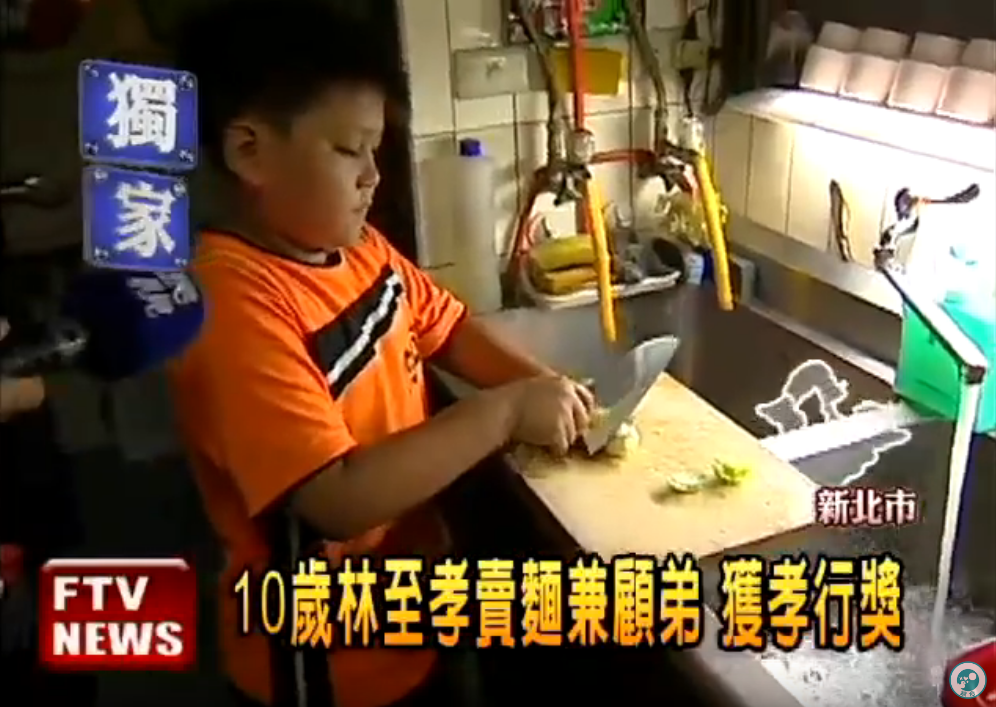 10歲時的孩子們都在做些什麼呢?看電視、寫作業、和同學一起玩遊戲,然而這個小孩不一樣,在2011年時民視曾拜訪一位小孩,他是當時年僅10歲的林至孝。看著他影片中煮起牛肉麵來很有架勢,熟練地操作著每個步驟,切菜洗菜,在店裡忙進忙出,就能想像平常的他有多常接觸。