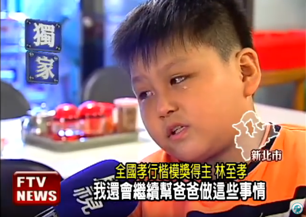 如此孝順懂事的孩子更在當年代表新北市獲得全國孝行楷模獎,林至孝除了開心之外,更堅強表示會陪伴爸爸以及全家人走過這些難關。真的是好懂事的小孩,祝福他未來能擁有更平順的生活,和家人無憂無慮生活在一起喔~~
