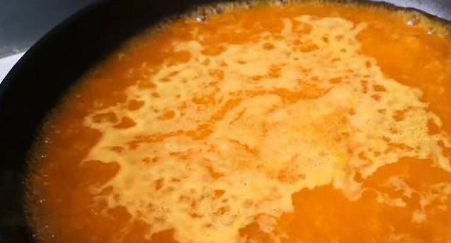 之後起鍋,將煮好的南瓜在鍋中壓成泥
