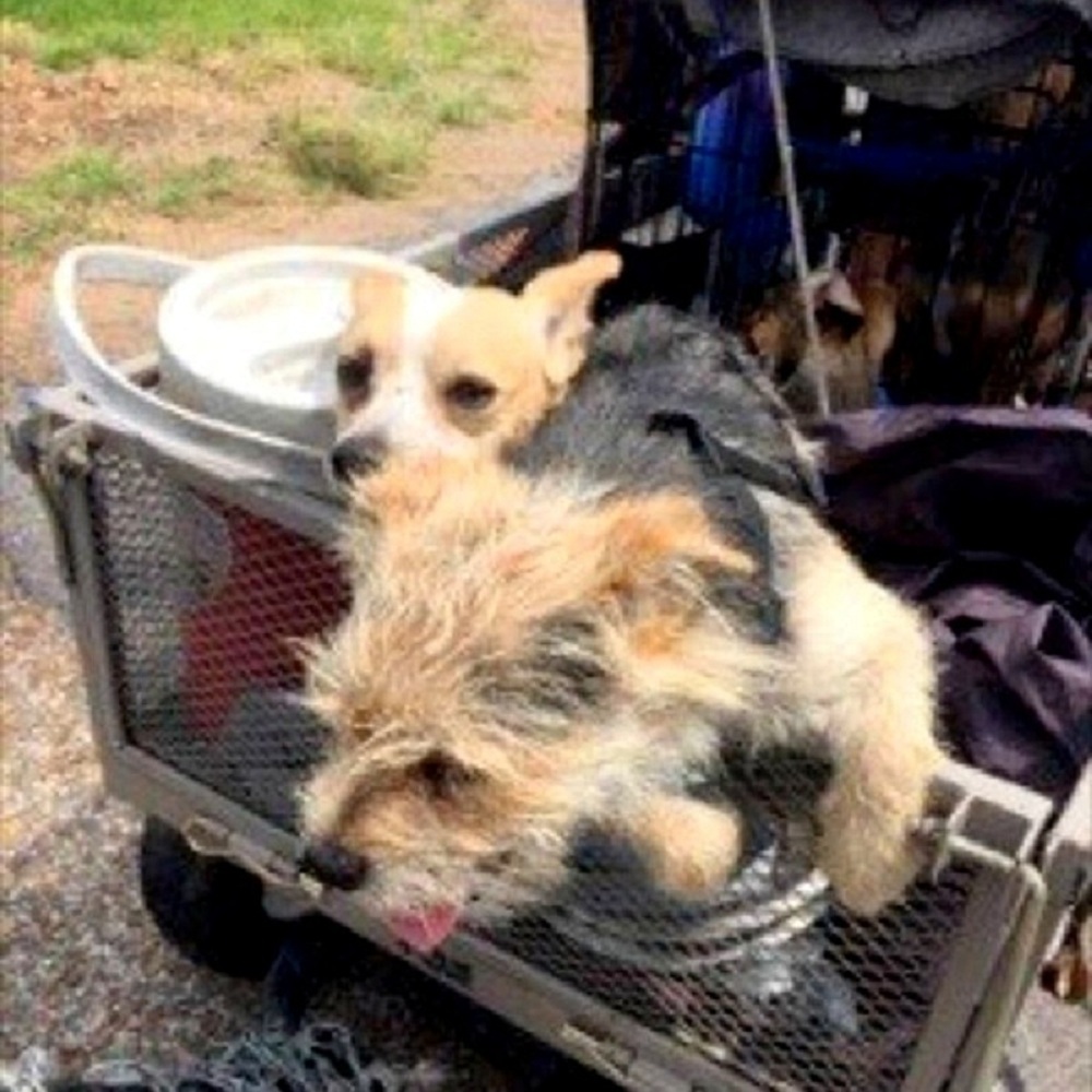 ▼一名叫Alicia的女子遇到了Steve。剛開始她沒注意這個流浪漢,後來她發現Steve的小車裡有好幾隻狗狗,Steve已經筋疲力竭,但還在努力騎行。Alicia忍不住詢問Steve的情況,得知Steve的故事後,她決定伸出援手。