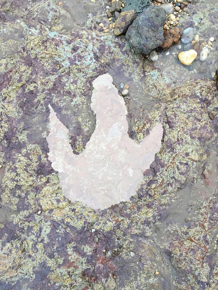 具外媒報導,懷特海岸化石搜尋組織在桑敦灣發現了這個隱藏在沙土中的巨大腳印,腳印痕跡被保留在色彩鮮豔的黏土裡,直到風暴將上層的沙土吹開之後,這個古老的腳印才終於重見天日!