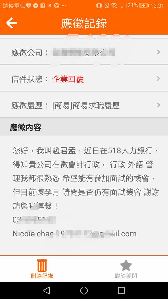 日前一名懷孕的趙小姐,在臉書社團「新竹爆料公社」PO文,她說自己10月底應徵一間工程行的會計行政,在應徵的時候就備註自己已經懷孕,希望如果還有工作機會的話,請公司聯絡,結果對方不久就通知她面試,後來也順利錄取。