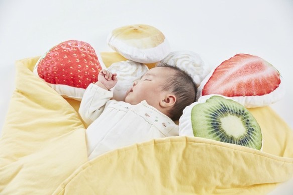這款毯子其實是手作毯子店「uhuhu」刊登在Creema上的產品,圓圓的毛毯上還放著草莓、香蕉、奇異果和鮮奶油造型的小抱枕,繽紛可愛的畫面實在太療癒了~天氣溫暖時小寶寶可以躺在上面睡午覺,如果變冷的話也可以將毯子往內折,就可以得到一份超可愛的寶寶可麗餅