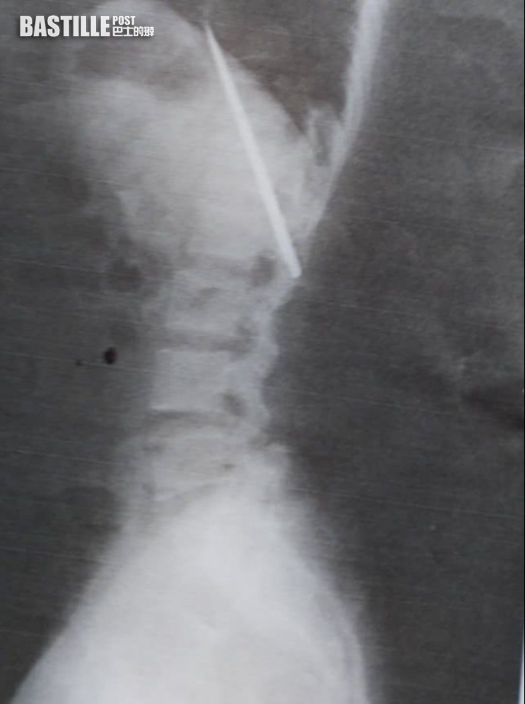Tomao照X光時發現胸口埋有利刀已達14個月。(網上圖片)
