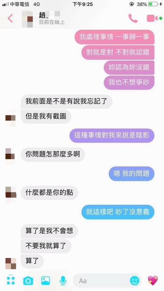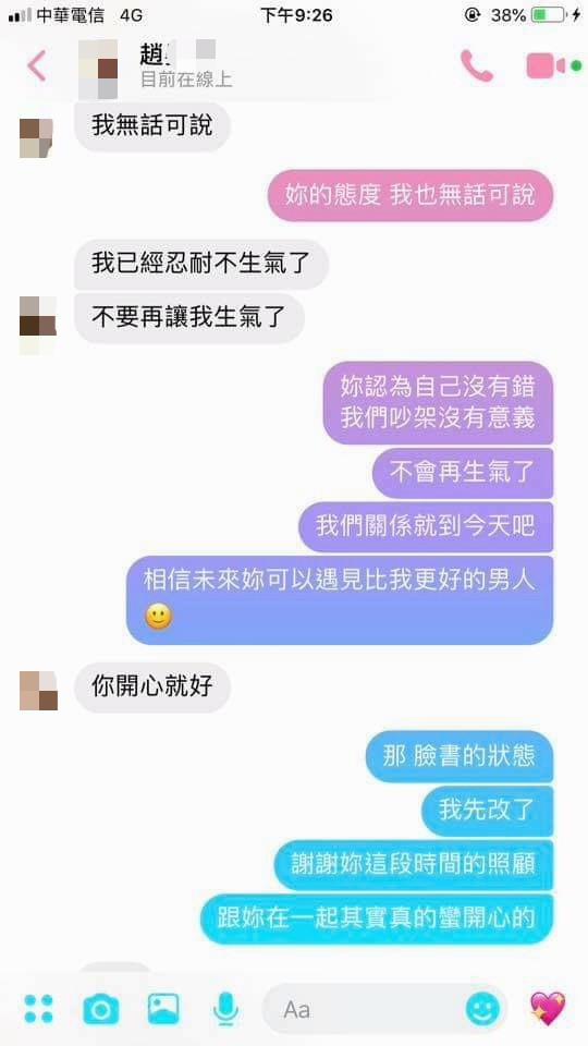 如果這些對話大家還是認為我是想找藉口分手,那我願意成為全民公敵。
