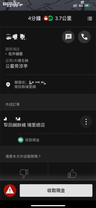 這名來自南投縣的外賣員日前在Facebook群組「外送員的奇聞怪事」發文,表示他當晚接近凌晨12點時接到訂單,要送一客鹽酥雞到附近一個公墓,客人還指明要在「公墓旁涼亭」見面交收。他雖然覺得奇怪,但也不虞有詐,遂接下單子。
