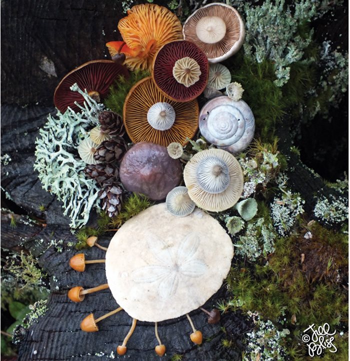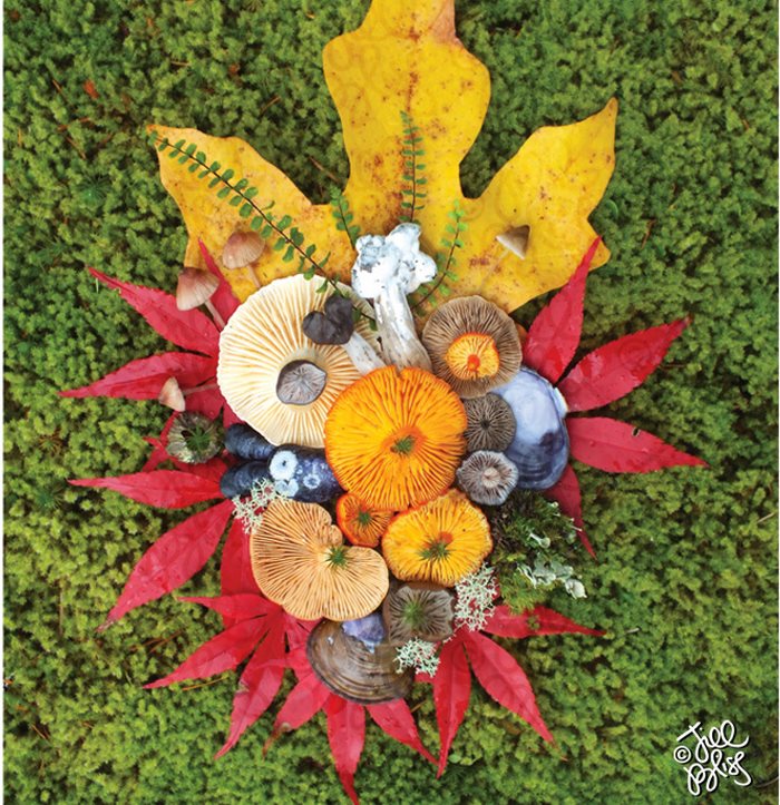 她收集菇菇「在草地上擺盤」 成品超讓人驚艷:比花朵還美!