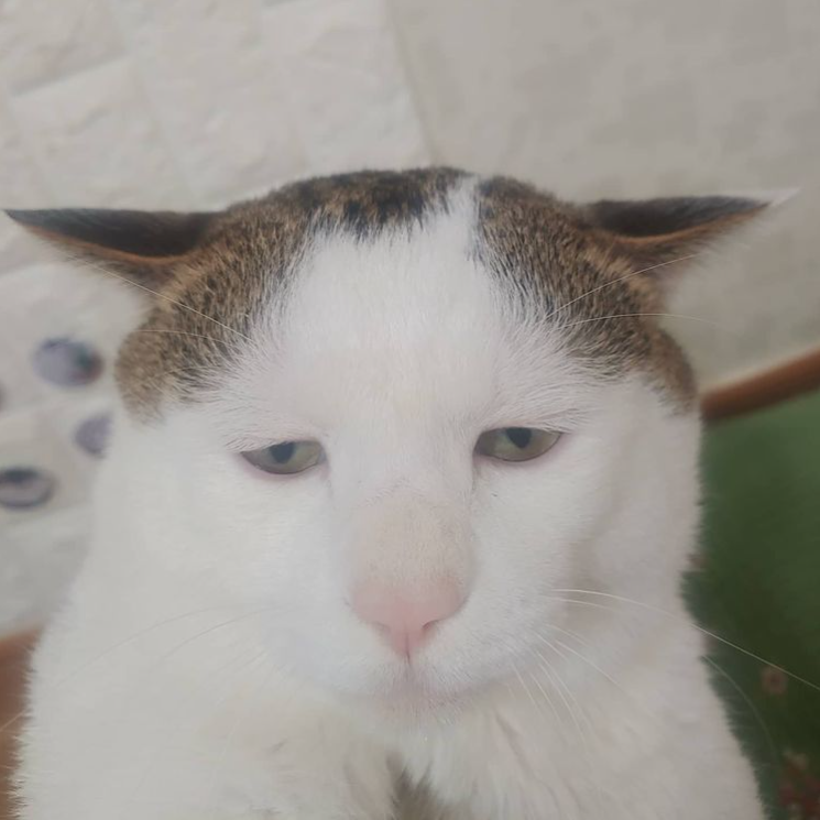 這隻貓咪其實名叫억울이(Urgry),因為天生的哀怨臉和讓人想偷捏的豐厚嘴邊肉而吸引了不少粉絲關注~這天只見牠半窩半坐在一個小紙箱內,瞇瞇眼看起來有些無神,於是飼主便拿出了逗貓棒想逗逗牠,好在這孩子一看到逗貓棒還是有反應的,牠緩緩地伸出了手手...