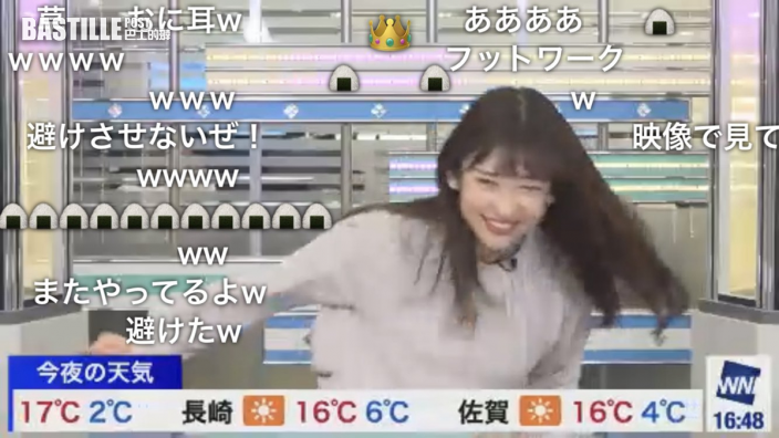 過去新聞主播都給人一種嚴肅、端莊的印象,不過近年來出現越來越多走親民路線的主播。日本一家專門播報氣象新聞的公司就因擁有多位靚麗又可愛的氣象女主播而受到民眾關注,她們貼地又親民的舉動時常獲得大家好評。最近其中一位女主播因直播時閃避觀眾惡搞彈幕而引發網友熱議,大家紛紛讚她太可愛了!