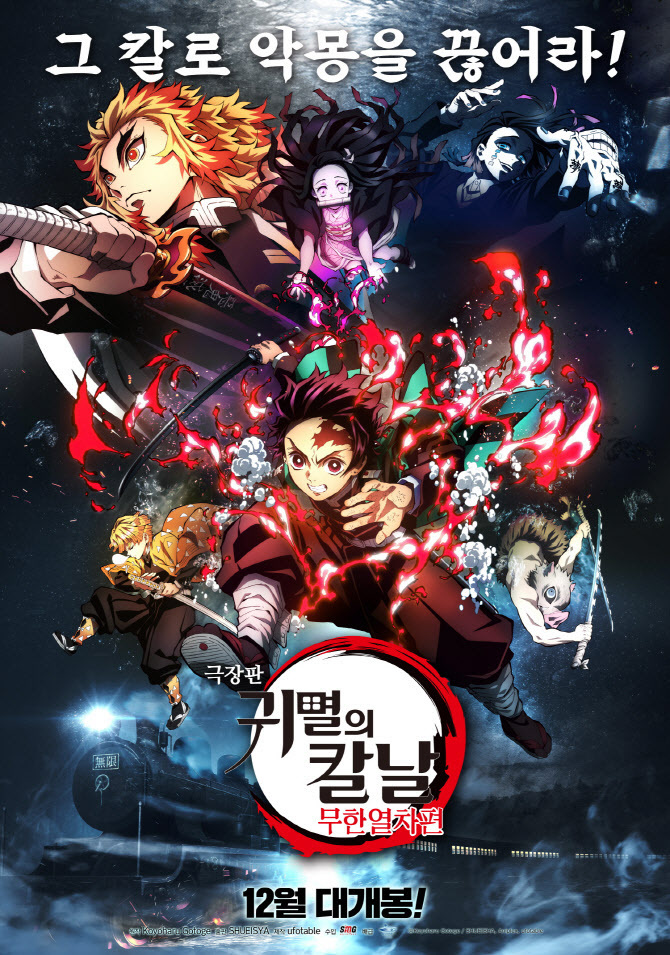 《鬼滅之刃劇場版 無限列車篇》韓國版海報已修改旭日旗圖案。(圖片截至:edaily) | |