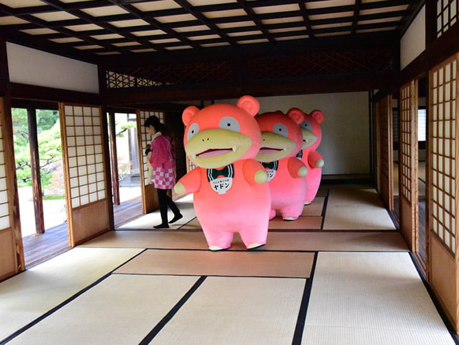 香川縣雖然是日本面積最小的縣,不過人口其實相當稠密,當地盛產好吃的「讚岐烏龍麵」,而由於呆呆獸的日語名稱叫做「 Yadon」,音近烏冬麵(うどん)的發音,所以才會雀屏中選,被香川縣選為最Q萌旅遊宣傳大使~