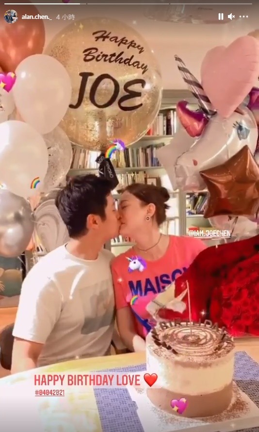 然而最吸引眾人目光的還是她與男友Alan的親親放閃影片!當天陳喬恩利用特效讓男方嘟嘴親不停,而Alan不僅邀來陳喬恩的好友,用心準備了女友最愛的氣球,更是非常浪漫地寫下告白「HAPPY BIRTHDAY LOVE」讓許多粉絲看了都忍不住直呼被閃瞎~