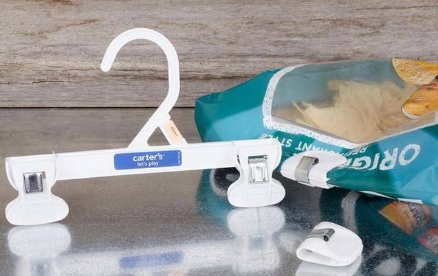 吃剩下的零食封口不嚴密,易受潮變質,只能扔掉。如果將封口捲起來,拿衣夾夾緊,就能保持食物的乾燥度,下次吃還是香香脆脆。